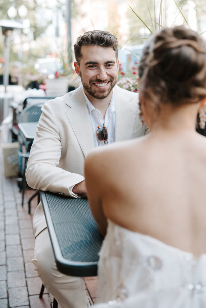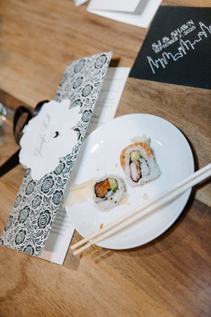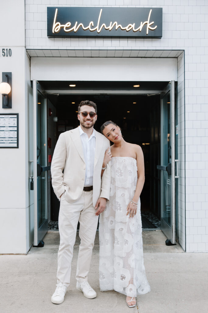 Saturday was filled to the brim with wedding weekend events. The morning began with the couple and their families participating in a Jewish pre-wedding tradition called an Aufruf, celebrating the couple ahead of their marriage. That evening, all weekend guests gathered for casual welcome drinks at Old Town’s Benchmark. SJ and Shawn coordinated their outfits and looked effortlessly chic — the perfect preview of the celebrations still to come.
