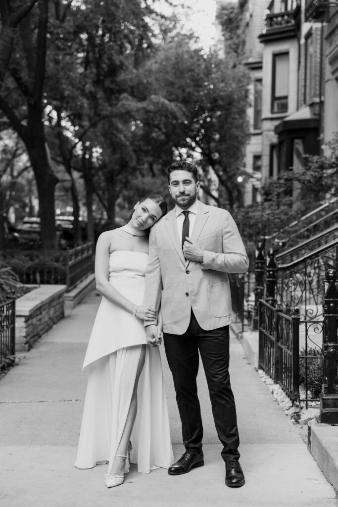After an emotional first look, Sally Jane took part in Kabbalat Panim, a Jewish tradition in which the bride gives and receives blessings from the important people in her life. At the same time, Shawn participated in a Tisch, where he was toasted and celebrated by his groomsmen. Soon after, the couple reunited and headed out for photos throughout the city before making their way to the venue.