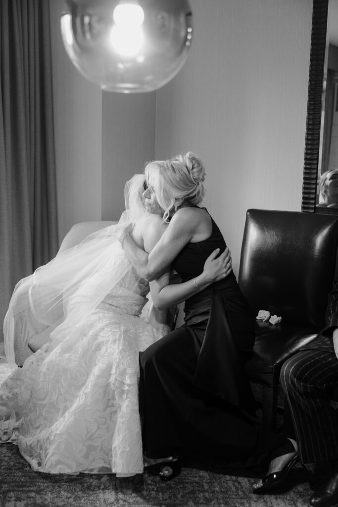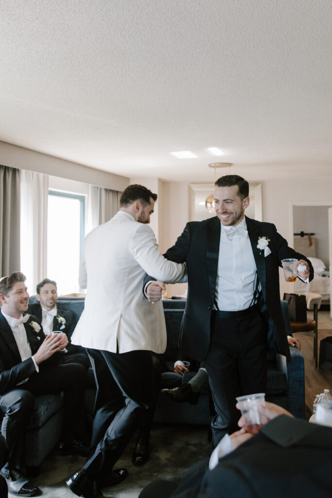 Wedding day arrived, and Sally Jane and Shawn started their mornings getting ready in separate hotel suites — SJ with her girls and glam squad, Shawn with his guys and a little bourbon.
